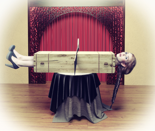 The audience, used to the spectacular theatrics of master illusionists, assumed that the blood and screams were part of the act, and roared Mr Derbyshire’s efforts on. Fortunately for Ms Koposwki, the theatre’s sharp-eyed sound and lighting man, noticed her increasing pallor and raised the alarm.  The amputation of her leg was completed later that evening under more hygienic conditions. At the time of writing, Mr Derbyshire remains under the care of the mental health services.